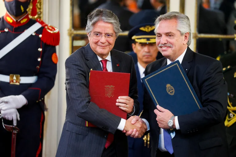 Lasso y Fernández mantuvieron un encuentro privado en Casa de Gobierno y después los Jefes de Estado rubricaron una Declaración Presidencial Conjunta en la que destacaron el dinamismo del comercio bilateral en 2021 y las oportunidades que existen para su crecimiento y diversificación.