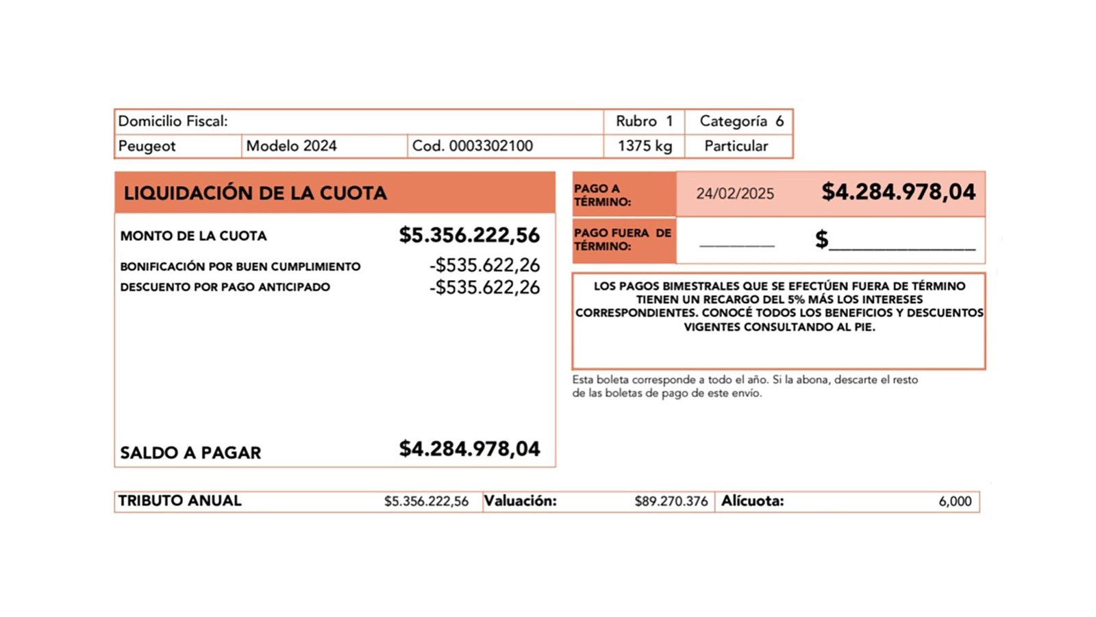 Este cambio fundamenta por qué algunos vehículos han registrado aumentos muy pronunciados. Por ejemplo, se han verificado casos de automóviles con más de una década de antigüedad que pasaron a tributar sumas considerablemente superiores debido a la nueva estimación fiscal, a pesar de no haberse modificado la alícuota aplicable.